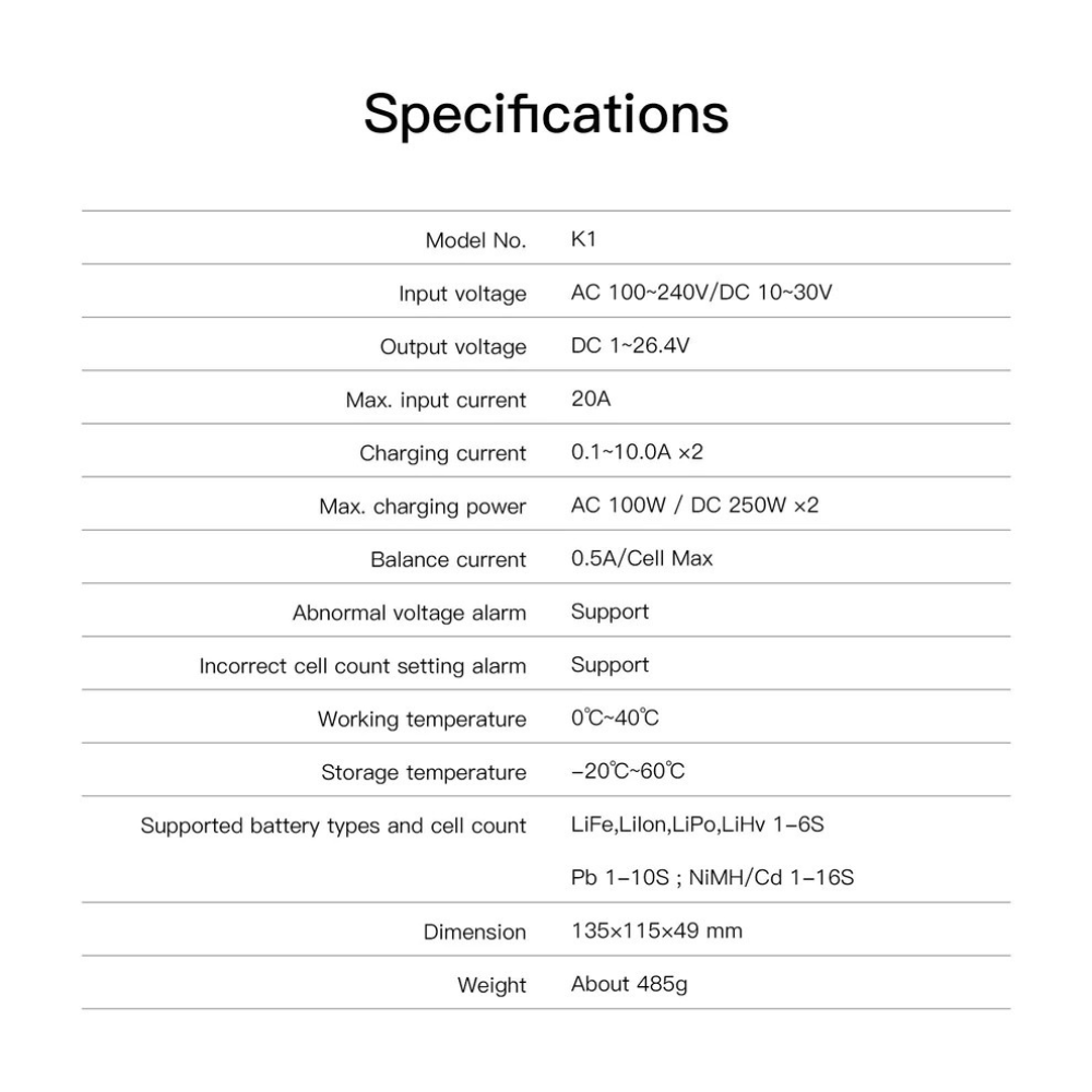 Model: ISDT K1 Dual Port 1~6S 100~250W x 2 AC/DC Smart Charger